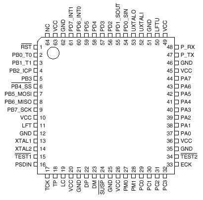 AT76C711 - контроллер моста, на основе микроконтроллера AVR, между полноскоростной шиной USB и быстрым последовательным асинхронным интерфейсом